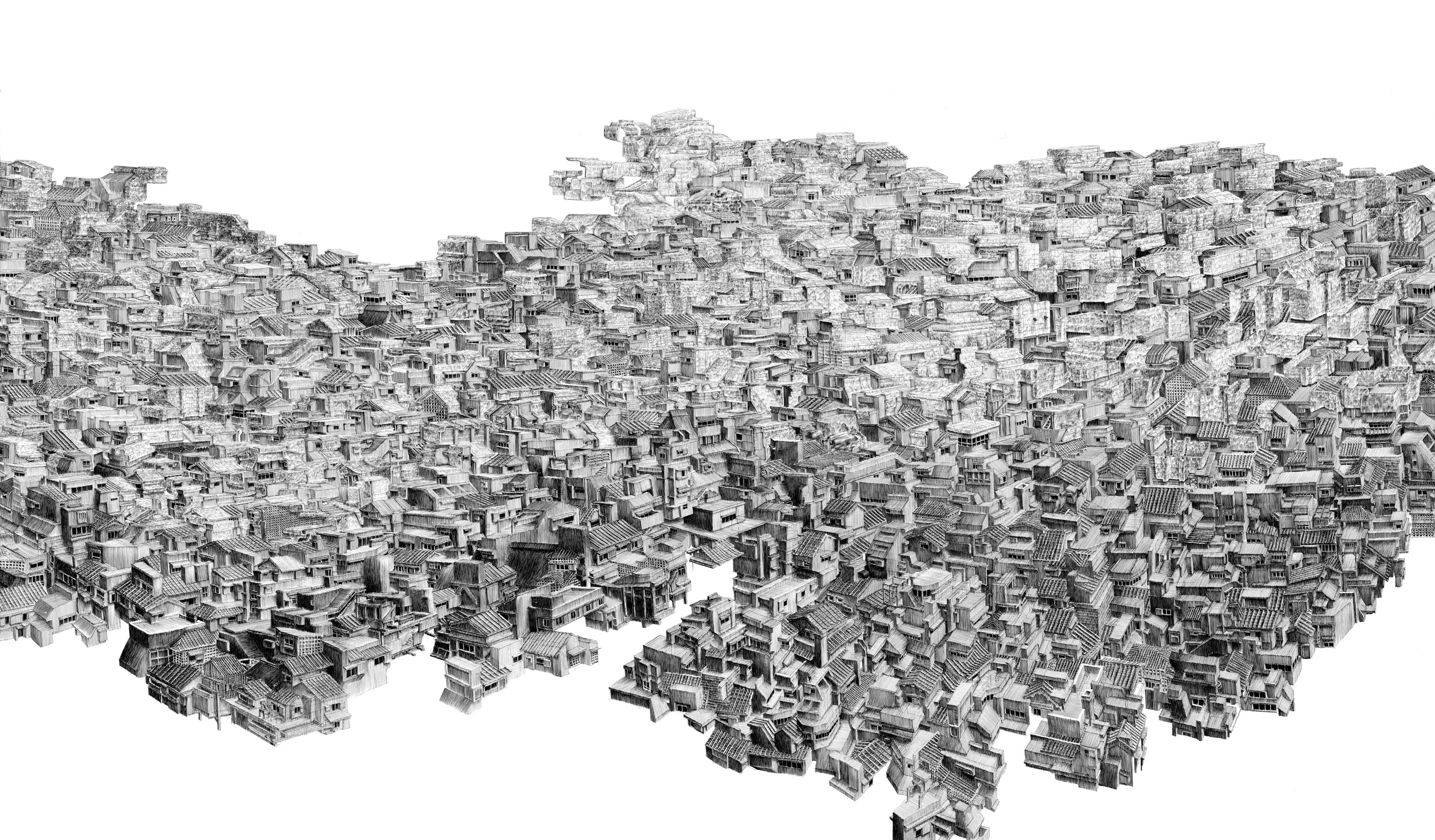 2012, 187 x 110 cm. Black fineliner on paper. Private collection