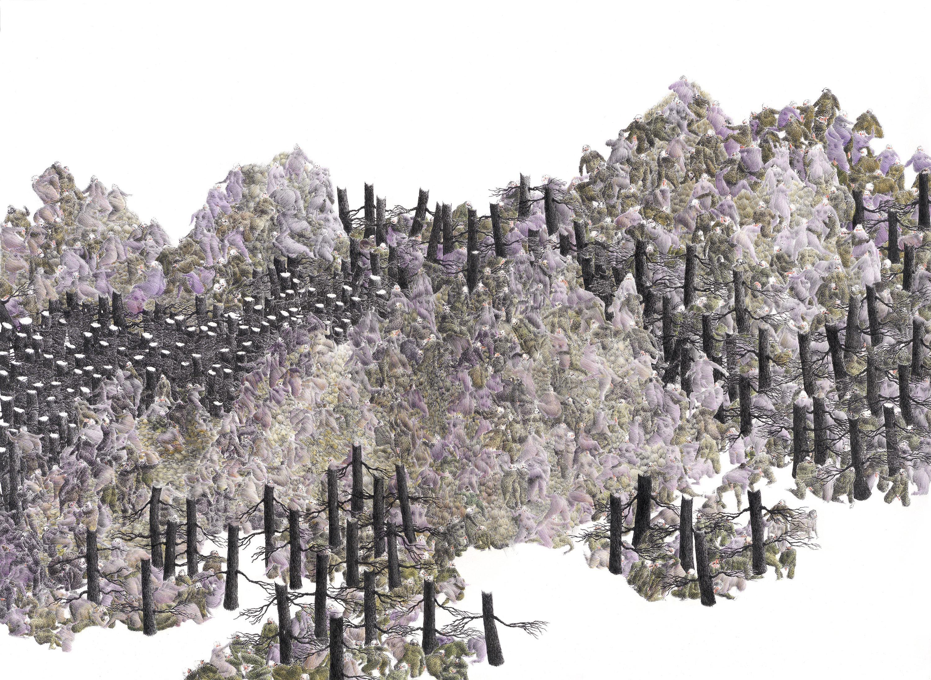 2016, 109 x 80 cm. Black fineliner and coloured pencil on paper. Private collection