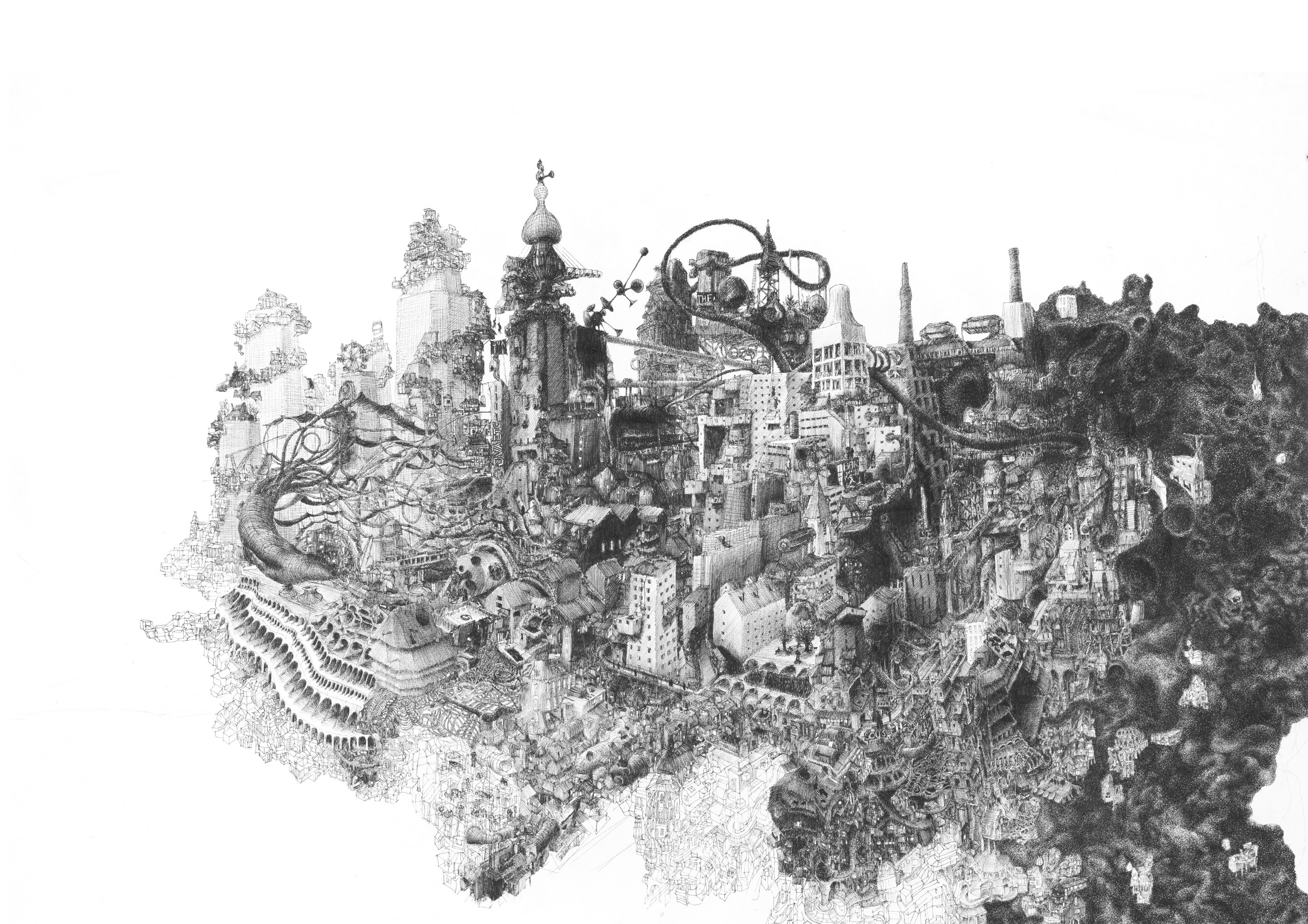 2008, 100 x 80 cm. Black fineliner on paper. Private collection