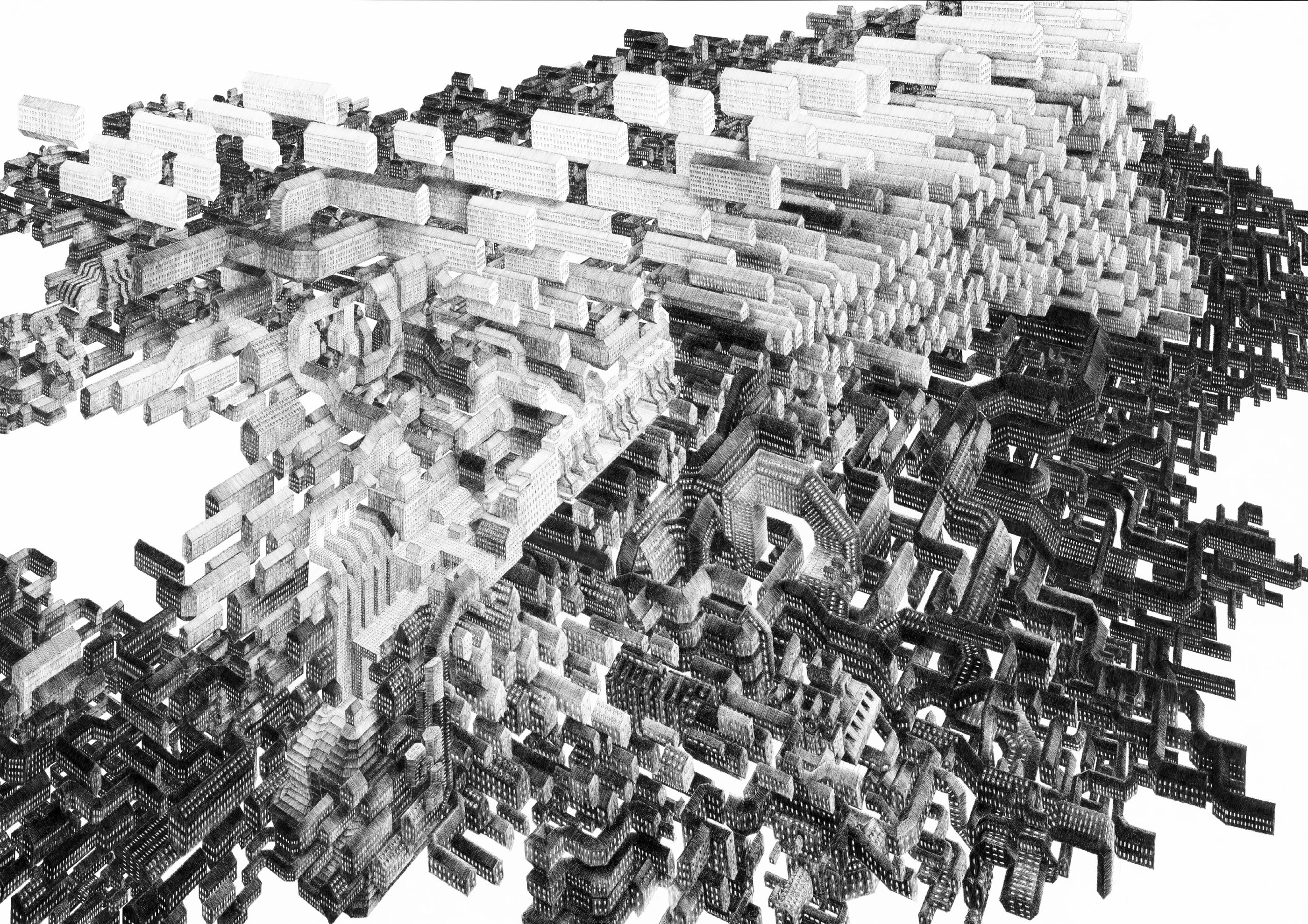 2009, 150 x 130 cm. Black fineliner on paper. Private collection